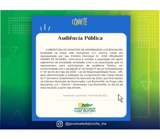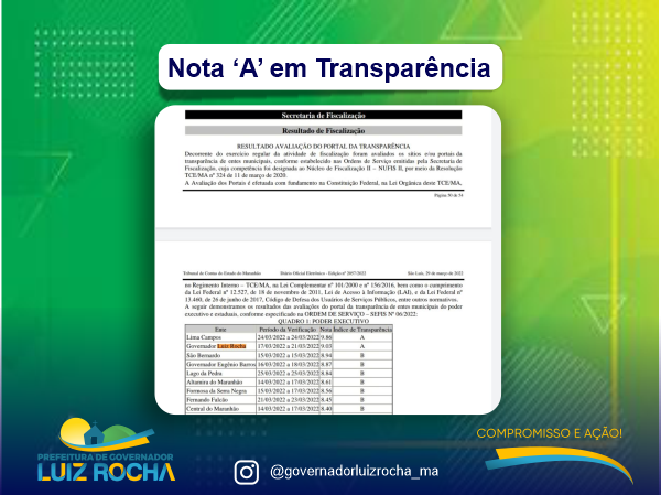 PREFEITURA DE GOVERNADOR LUIZ ROCHA NOTA " A " EM TRANSPARÊNCIA